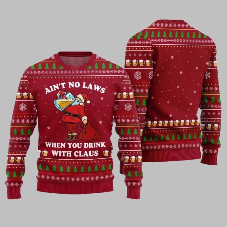 Turn up the fun this holiday season with the 2025 Christmas “Ain’t No Laws When You Drink With Claus” Ugly Sweater! Perfect for party lovers and those who don’t take Christmas too seriously, this hilarious sweater mixes festive cheer with a cheeky drinking theme — guaranteed to get laughs (and maybe a few toasts) at every holiday gathering.