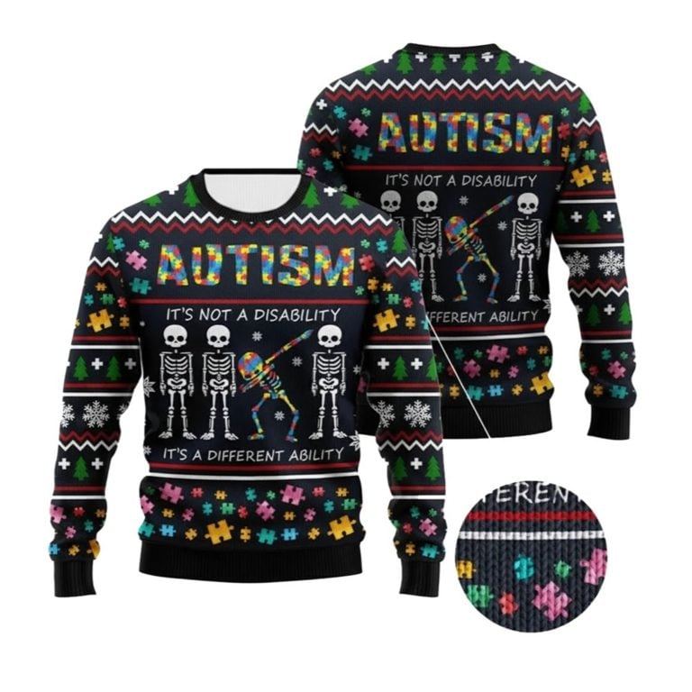 Ideal for Ugly Sweater parties, awareness events, or as a thoughtful gift that supports understanding and kindness.