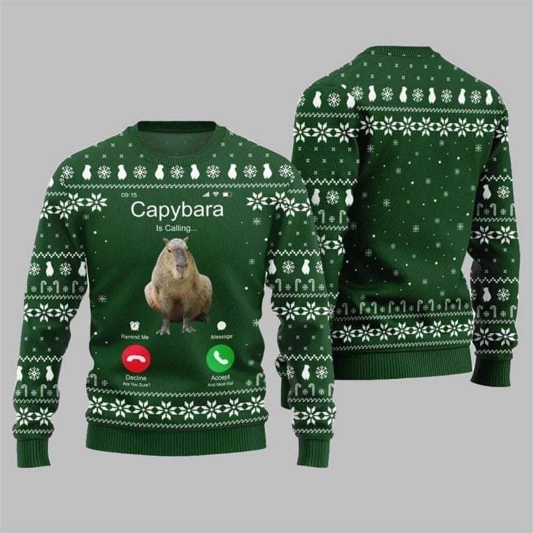 Bring calm and charm to your festive wardrobe with the 2025 Christmas Calling Capybara Ugly Sweater. Featuring the internet’s favorite gentle creature, this sweater blends laid-back capybara energy with cheerful Christmas vibes — perfect for those who like their holidays relaxed, funny, and full of warmth.