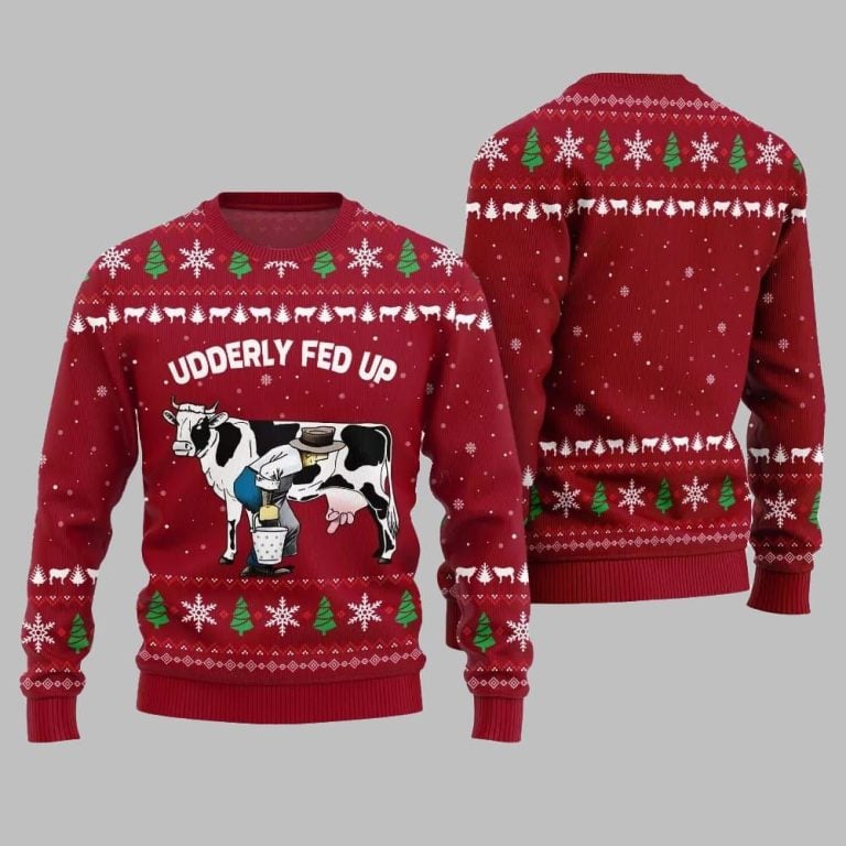 2025 Christmas Cow Udderly Fed Up Ugly Christmas Sweater 2025 Christmas Cow Udderly Fed Up Ugly Christmas Sweater