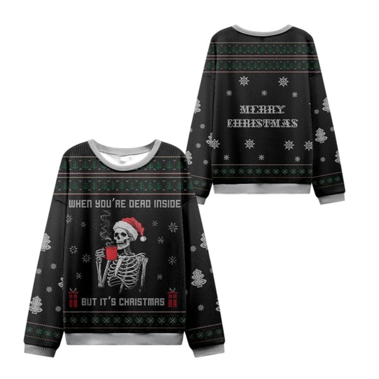 Embrace the true spirit of modern Christmas chaos with the 2025 Christmas “Dead Inside Festive Outside” Ugly Christmas Sweater — the ultimate outfit for those who are running on caffeine, fake smiles, and pure holiday survival mode. Equal parts hilarious and relatable, this sweater perfectly balances dark humor and festive charm, making it a must-have for anyone who loves Christmas… but also kind of doesn’t.
