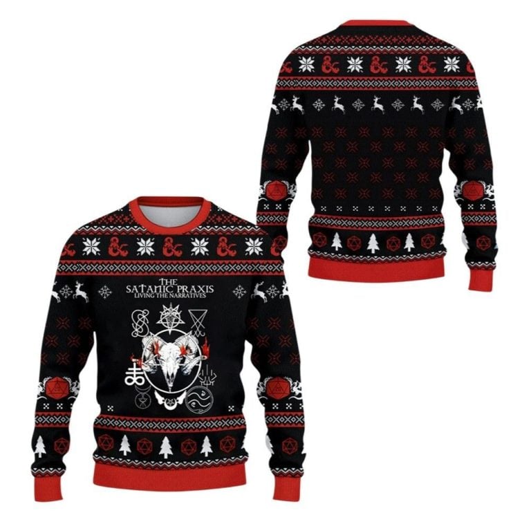 Embrace the darkly humorous side of the holidays with the 2025 Christmas DnD The Satanic Praxis Ugly Sweater. Inspired by the rebellious spirit of Dungeons & Dragons lore and the classic “satanic panic” era, this design playfully celebrates the misunderstood mystique of tabletop gaming—with a festive twist.