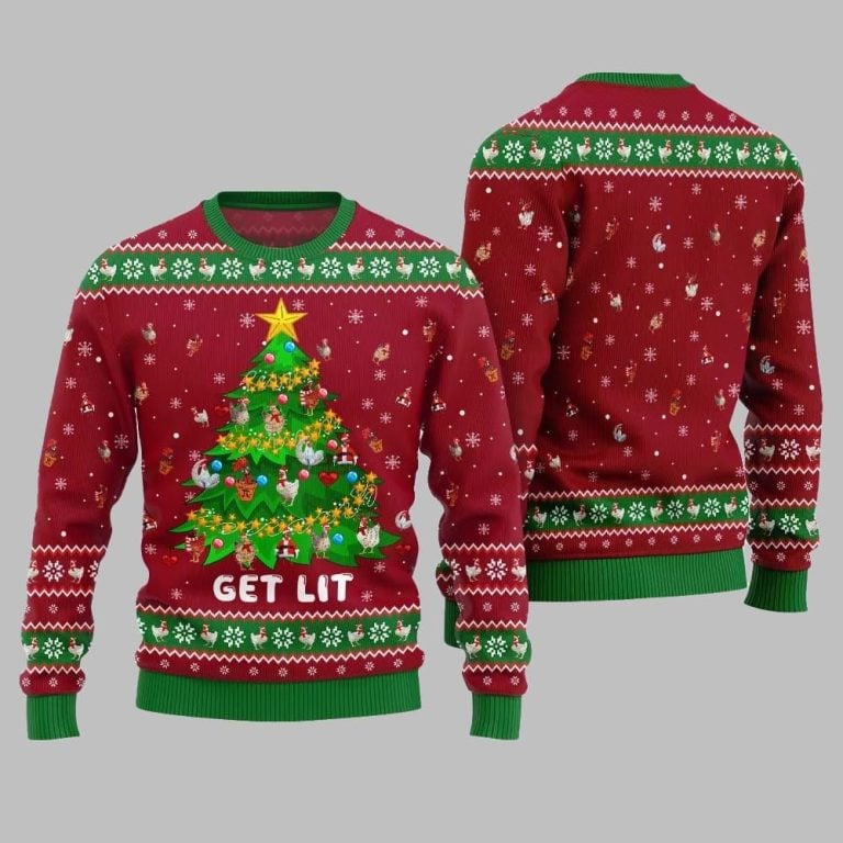 Featuring a bright, cartoon-style chicken ornament perched proudly among twinkling lights and colorful baubles, this sweater delivers equal parts humor and holiday spirit. It’s the perfect mix of quirky and cozy, guaranteed to make you the center of attention at any Christmas gathering.