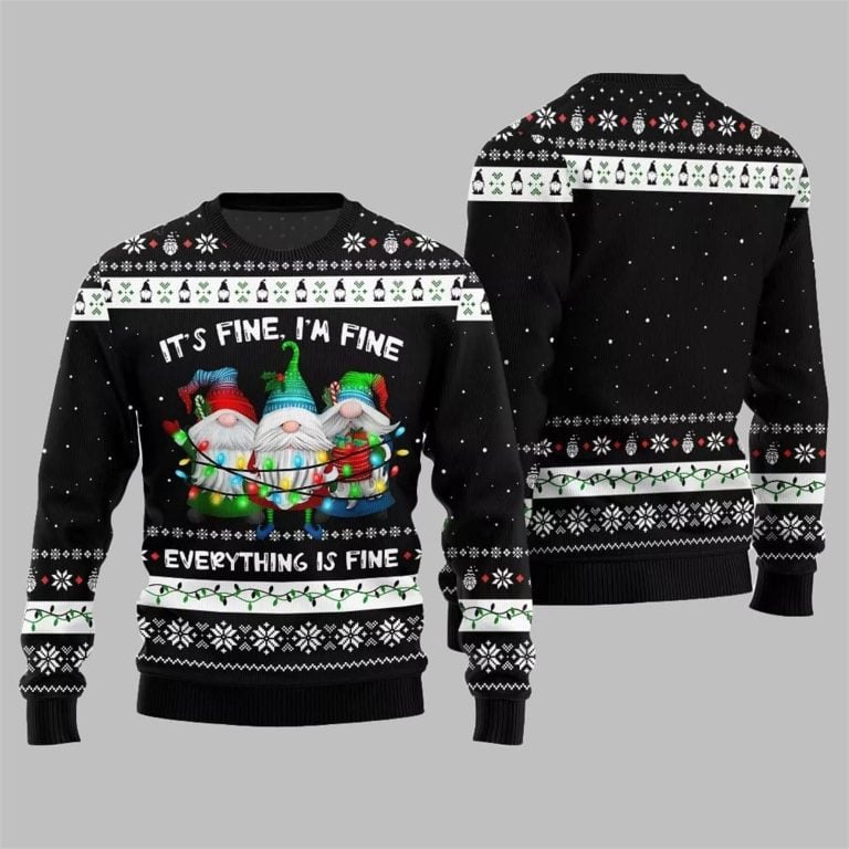 2025 Christmas Everything Is Fine Gnome Ugly Sweater Black 2025 Christmas Everything Is Fine Gnome Ugly Sweater Black