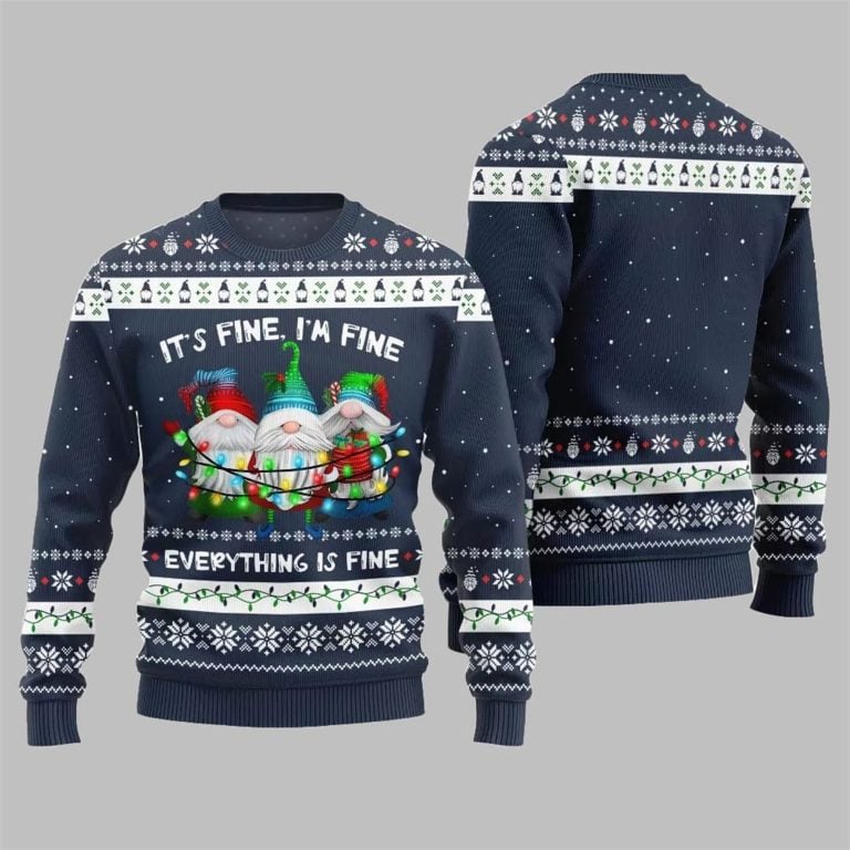 Keep your cool (or at least pretend to) this holiday season with the 2025 Christmas Everything Is Fine Gnome Ugly Sweater. Perfect for anyone who faces Christmas chaos with a forced smile and a sense of humor, this design captures the relatable spirit of festive mayhem.
