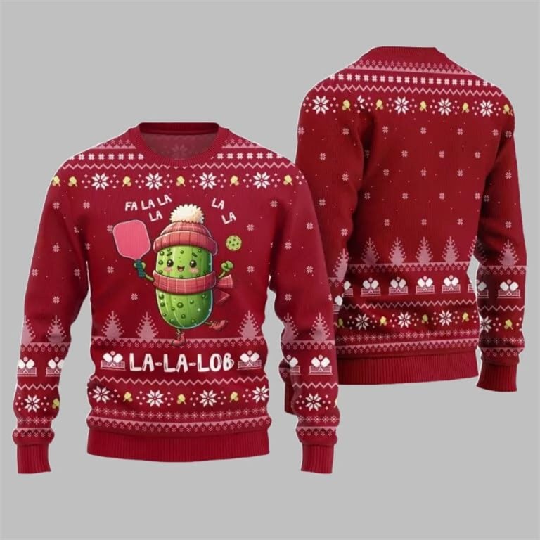 Serve up some holiday cheer with the 2025 Christmas Fa La Lob Pickleball Ugly Sweater! Perfect for pickleball enthusiasts who love mixing fun, fitness, and festive vibes, this sweater turns your favorite court phrase into a playful holiday pun.
