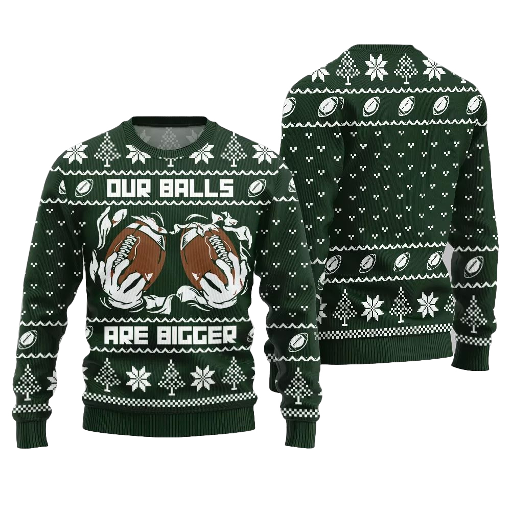 2025 Christmas Our Balls Are Bigger Football Ugly Christmas Sweater-Green