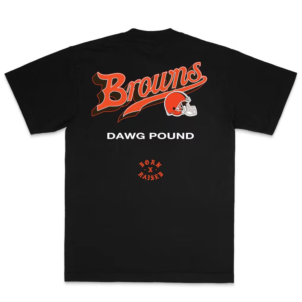 Graphic: Bold “Born x Raised” script with Cleveland Browns branding