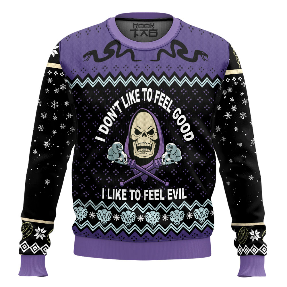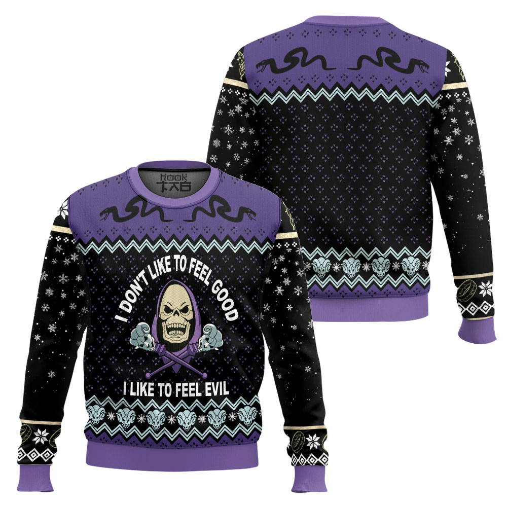3D Skeletor He Man I Like To Feel Evil Christmas Custom Ugly Sweater This Curvy Glams exclusive Ugly Christmas Sweater design is guaranteed to get attention and get the party started. It?s sure to be your best holiday purchase yet! Material: Our sweaters are made from high-quality polyester wool blend, which keeps you warm and never crack, peel or flake. Features a specialty high definition heat-dye application that ensures long lasting color vibrancy even after machine washing. All our sweaters are handcrafted, cut and sewn one-by-one for the highest quality standard Sizing: Unisex fit. Click on size chart button above add to cart button for addiditional sizing information Care Instructions: Regular handwash; Machine wash (max 40? or 105F); Do not bleach; Iron on a low heat;Tumble dry.