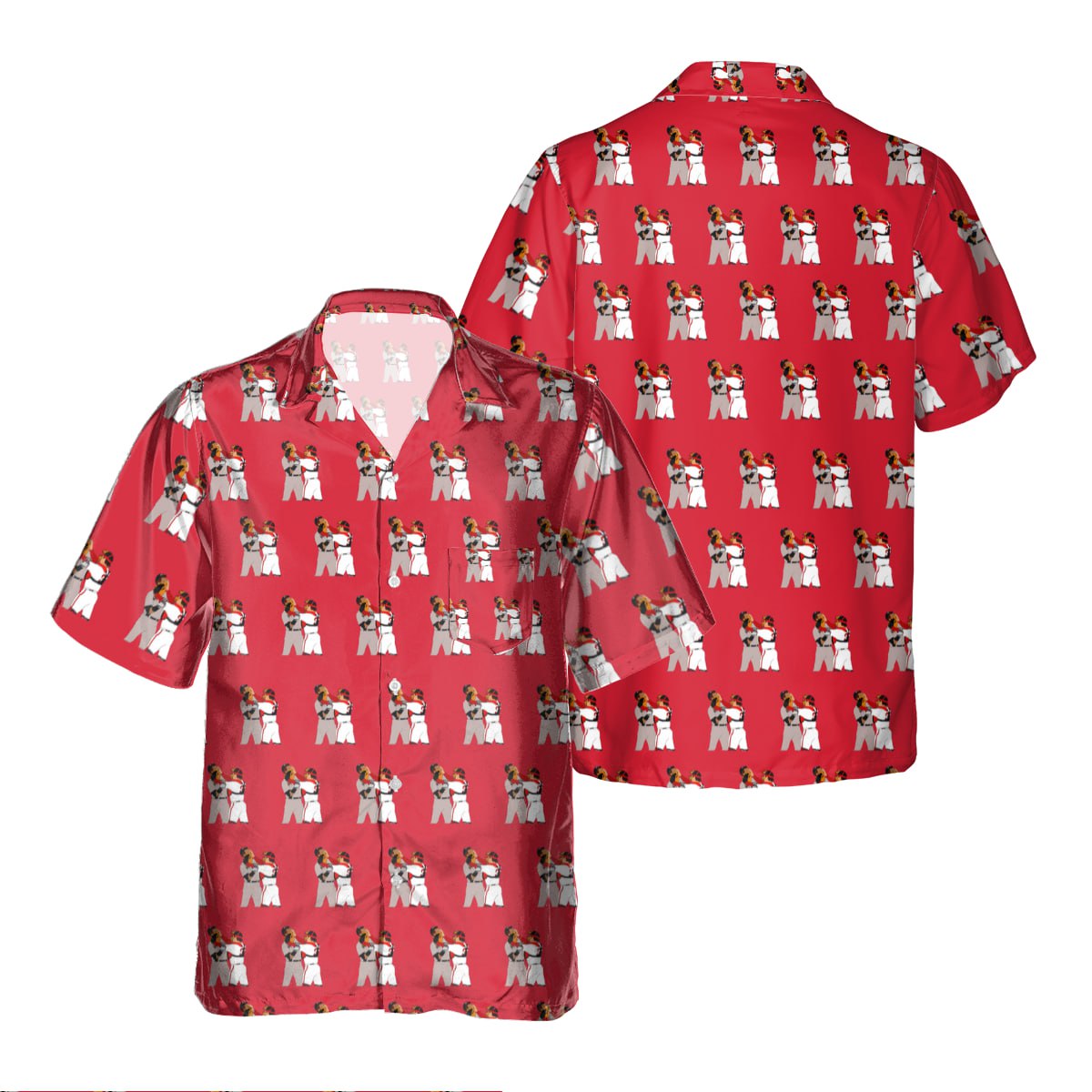 Iconic Design: Featuring a fun, vibrant Hawaiian print with a nod to the infamous brawl, this shirt brings together sports history and tropical style. The design captures the intense moment between Alex Rodriguez and Jason Varitek in a playful, fashionable way.
