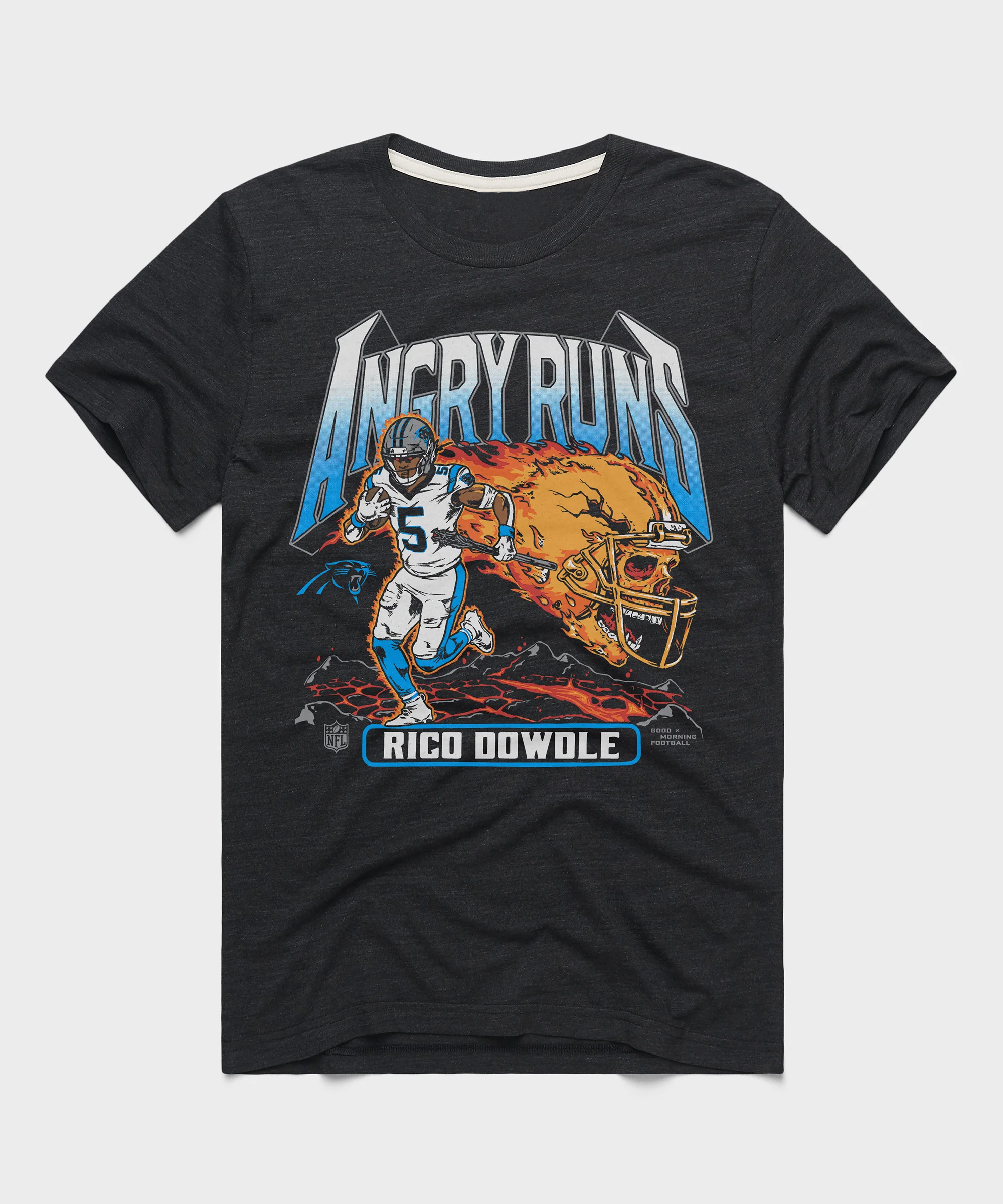 Whether you’re at Bank of America Stadium, hosting a tailgate, or watching the game with friends, this t-shirt is your go-to choice for showing off your Rico Dowdle and Panthers pride. The bold Angry Runs graphic captures Dowdle’s intensity, making it the perfect fan gear for any occasion.