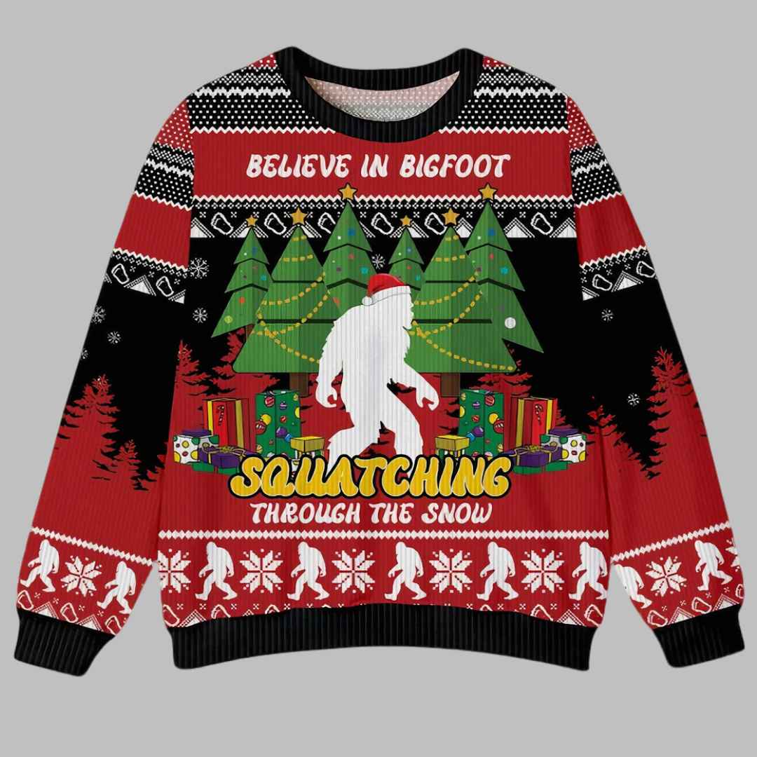 The Bigfoot Squatching Through The Snow Ugly Christmas Sweater is more than just a festive outfit?it?s a celebration of fun, laughter, and the holiday spirit. Whether you?re gifting it to a fellow Bigfoot fan or wearing it to spread joy yourself, this sweater is sure to be a hit. Add a touch of legendary charm to your Christmas celebrations and make memories that last a lifetime. Don?t wait?grab your Bigfoot Squatching Through The Snow Ugly Christmas Sweater today and make this holiday season unforgettable!