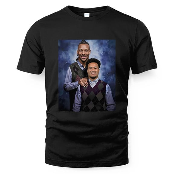 This shirt blends the hard-hitting prowess of Bijan Robinson and Tyler Allgeier with the comedic camaraderie of the Step Brothers movie. With a graphic that brings these two Falcons stars together in a playful, cinematic-style design, it’s perfect for fans who love both the football grind and the lighter side of the game.