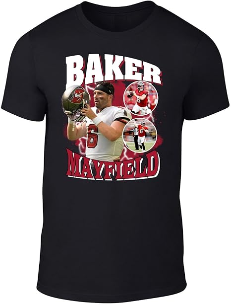 Baker Mayfield is known for his confidence, fearlessness, and swagger—and this shirt reflects just that. The bootleg-style design offers a playful yet bold twist, making it clear that you’re not just another fan, but one who celebrates the legendary quarterback in your own unique way. It’s the perfect shirt for those who love Mayfield’s personality as much as his on-field performance.