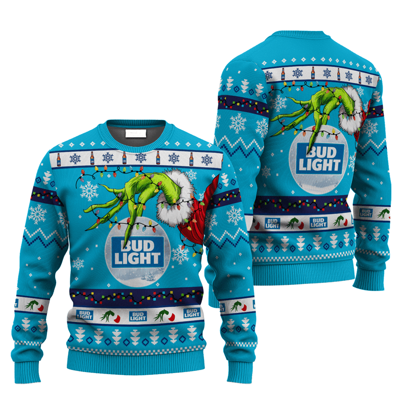 Discover the Bud Light Grinch Hand Stock Ugly Sweater