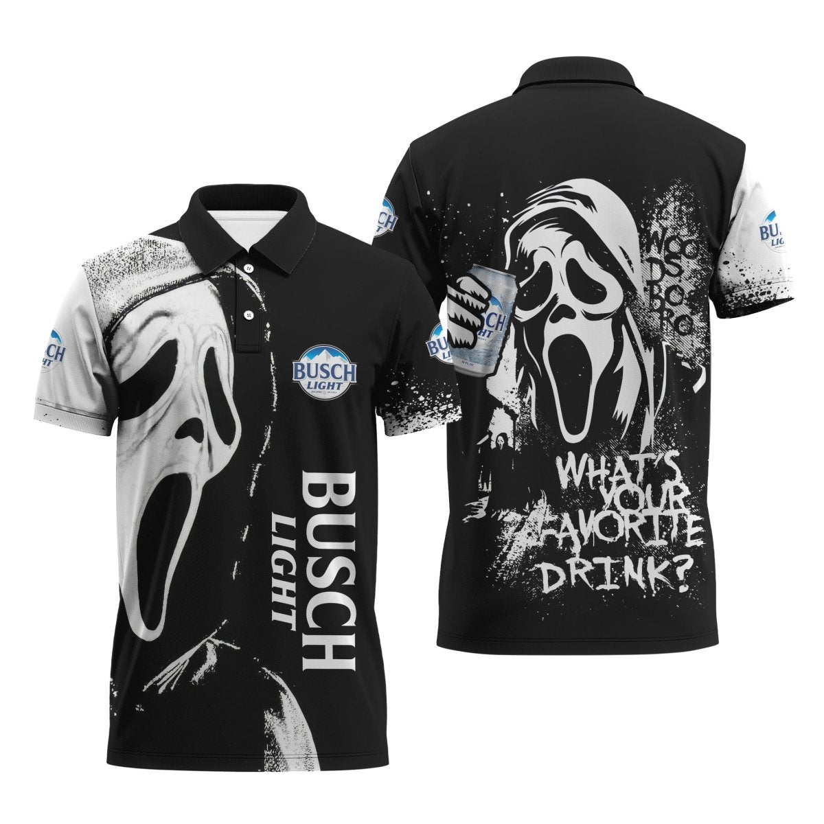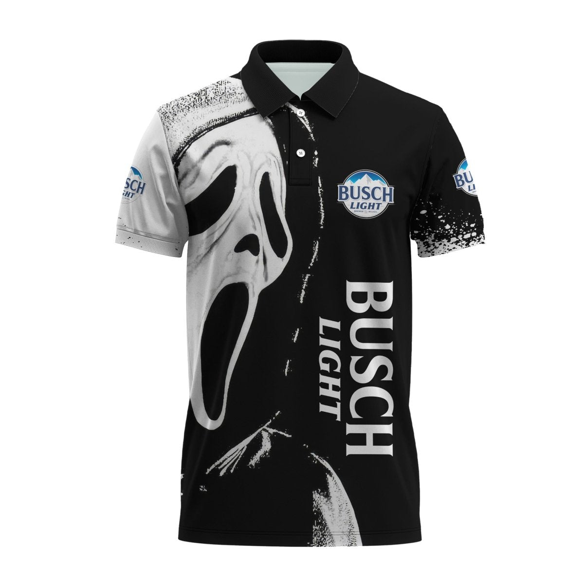 Taking care of your Busch Light Ghostface Scream Polo Shirt is a breeze. The fabric is easy to clean and maintain, ensuring that your shirt stays looking fresh and new for a long time. Simply follow the care instructions on the label, and you’ll be able to enjoy your polo shirt for years to come.