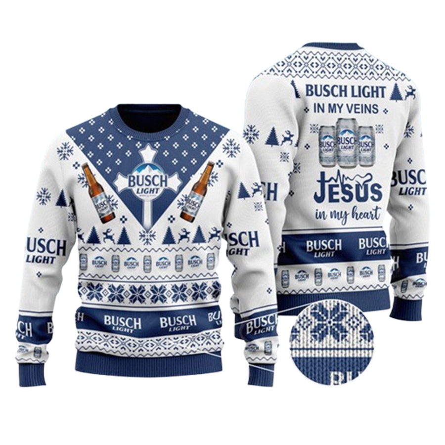 Busch Light In My Veins Jesus In My Heart Ugly Christmas Sweater Busch Light In My Veins Jesus In My Heart Ugly Christmas Sweater