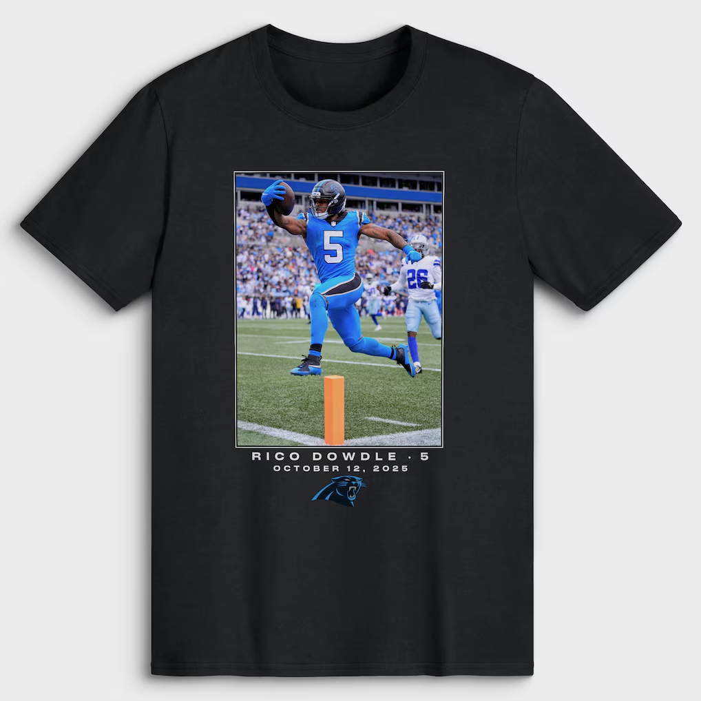 This shirt celebrates Rico Dowdle’s Week 6 standout performance with a bold, action-inspired graphic. Perfect for fans who admire skill, speed, and the moments that define a game.