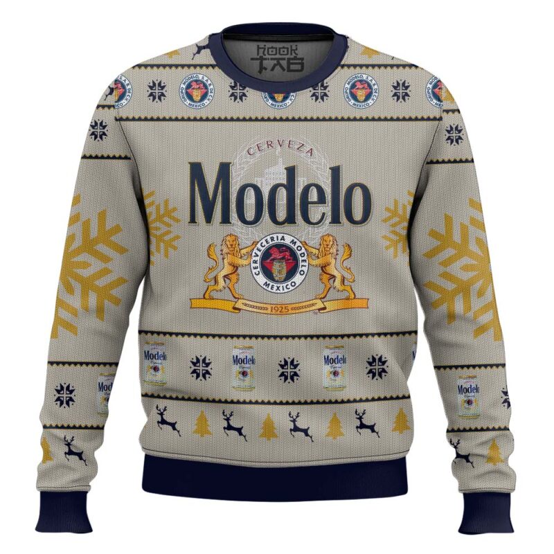 Celebrate the holidays with festive fun and playful party vibes in the Modelo-Inspired Ugly Christmas Sweater. Perfect for holiday gatherings, ugly sweater contests, or casual winter fun, this sweater combines cozy Christmas charm with whimsical, eye-catching design.