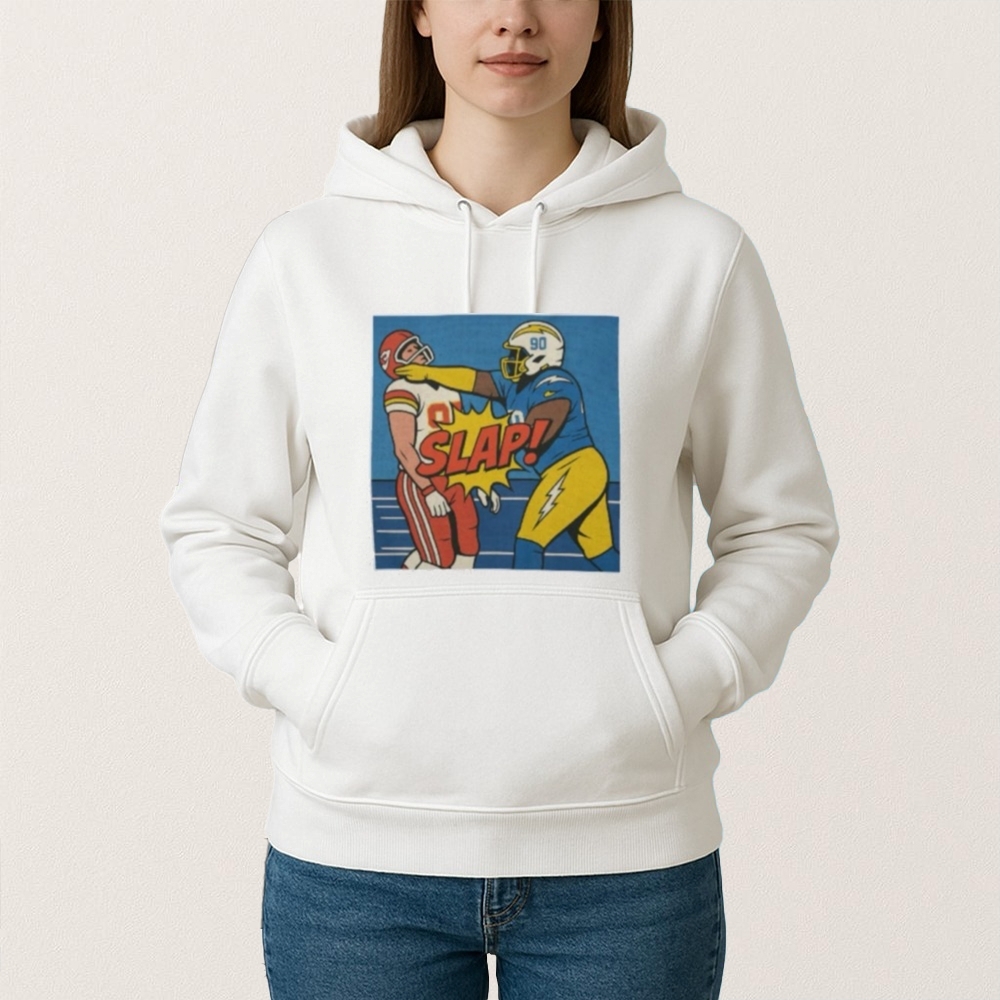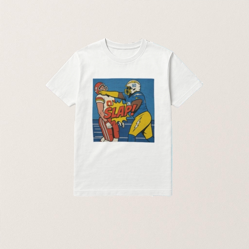 The “Chargers Travis Kelce Bitch Slap Shirt” emerged from a memorable incident during an NFL game between the Kansas City Chiefs and the Los Angeles Chargers. Travis Kelce, a prominent tight end for the Chiefs, was involved in a heated exchange that captured significant media attention and sparked widespread discussion among fans and analysts. This event, characterized by its intensity and the personalities involved, quickly became a talking point, leading to various creative expressions, including the infamous shirt. Such items often serve as a humorous or provocative commentary on sports rivalries and controversies, reflecting the passion and engagement of the fanbase. The shirt not only symbolizes a specific moment in sports history but also highlights the broader cultural phenomenon of how sports events can transcend the field, influencing fashion and popular culture.