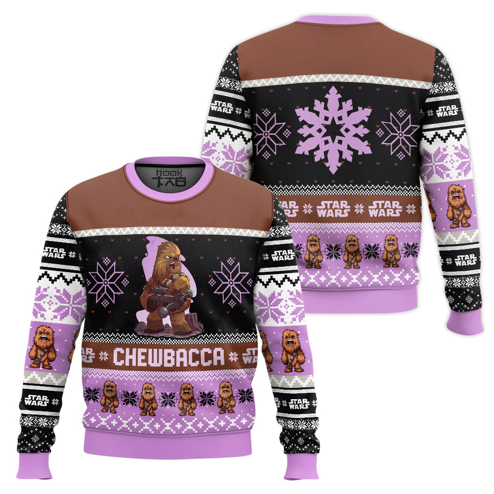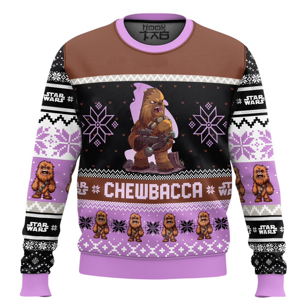 Chewbacca Star Wars Ugly Sweater This Curvy Glams exclusive Ugly Christmas Sweater design is guaranteed to get attention and get the party started. It?s sure to be your best holiday purchase yet! Material: Our sweaters are made from high-quality polyester wool blend, which keeps you warm and never crack, peel or flake. Features a specialty high definition heat-dye application that ensures long lasting color vibrancy even after machine washing. All our sweaters are handcrafted, cut and sewn one-by-one for the highest quality standard Sizing: Unisex fit. Click on size chart button above add to cart button for addiditional sizing information Care Instructions: Regular handwash; Machine wash (max 40? or 105F); Do not bleach; Iron on a low heat;Tumble dry.