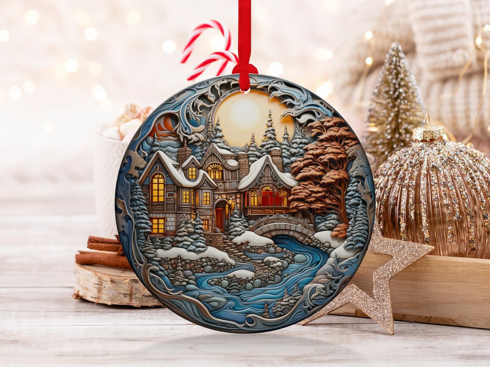 Add a touch of festive charm to your home with this round ceramic Christmas ornament, perfect for any holiday décor. Featuring classic Xmas village designs, this ornament captures the warmth and nostalgia of the season, making it a standout piece on your tree, mantel, or in your holiday displays.