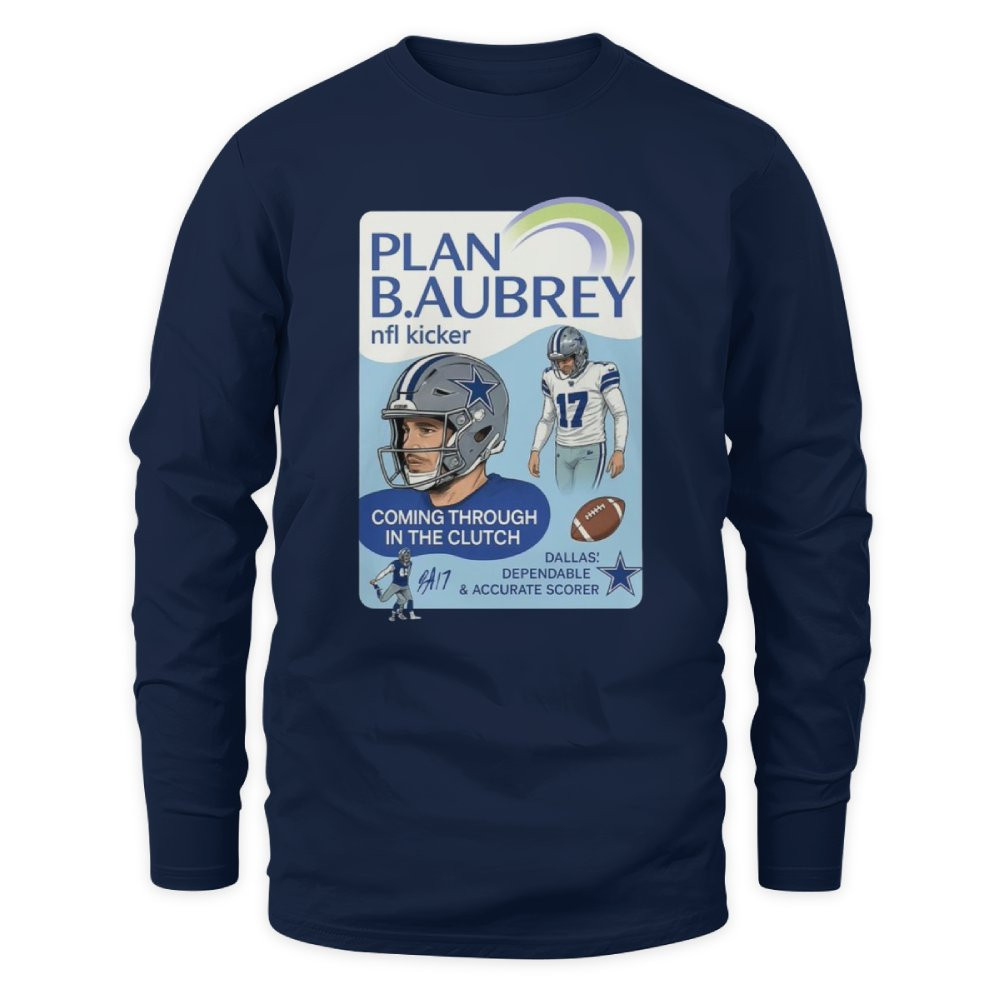 Get your Dallas Cowboys Brandon Aubrey Plan B.Aubrey Kicker T-Shirt today and let everyone know you’re all in on Plan B.Aubrey.