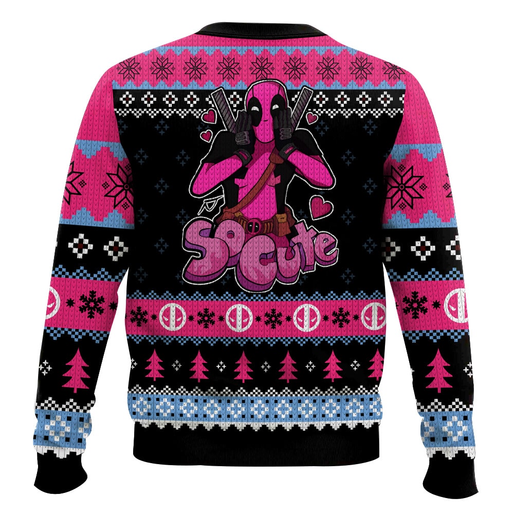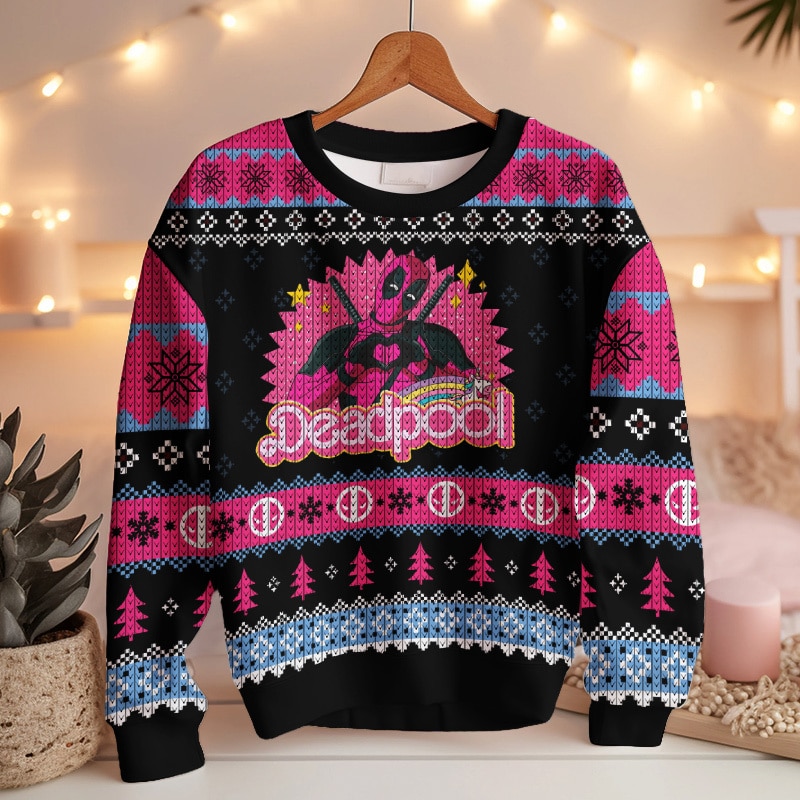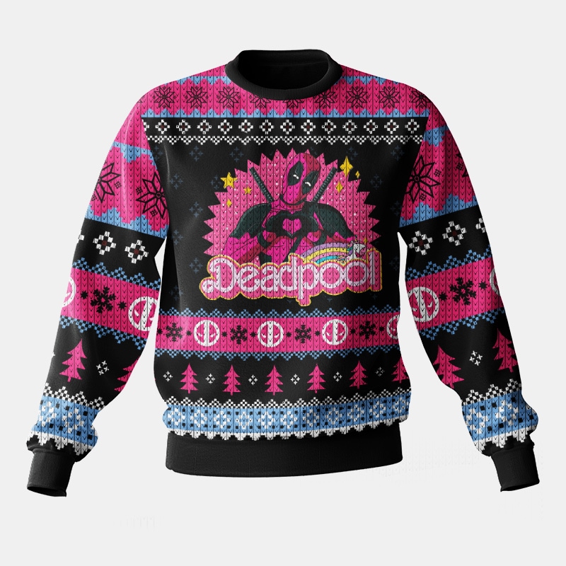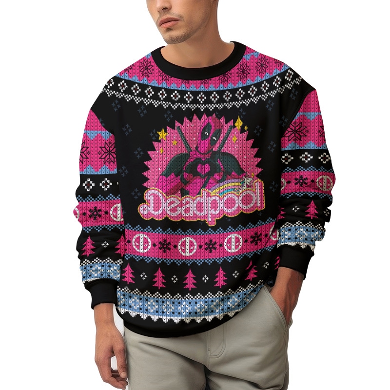 Deadpool Ugly Sweater This Curvy Glams exclusive Ugly Christmas Sweater design is guaranteed to get attention and get the party started. It?s sure to be your best holiday purchase yet! Material: Our sweaters are made from high-quality polyester wool blend, which keeps you warm and never crack, peel or flake. Features a specialty high definition heat-dye application that ensures long lasting color vibrancy even after machine washing. All our sweaters are handcrafted, cut and sewn one-by-one for the highest quality standard Sizing: Unisex fit. Click on size chart button above add to cart button for addiditional sizing information Care Instructions: Regular handwash; Machine wash (max 40? or 105F); Do not bleach; Iron on a low heat;Tumble dry.