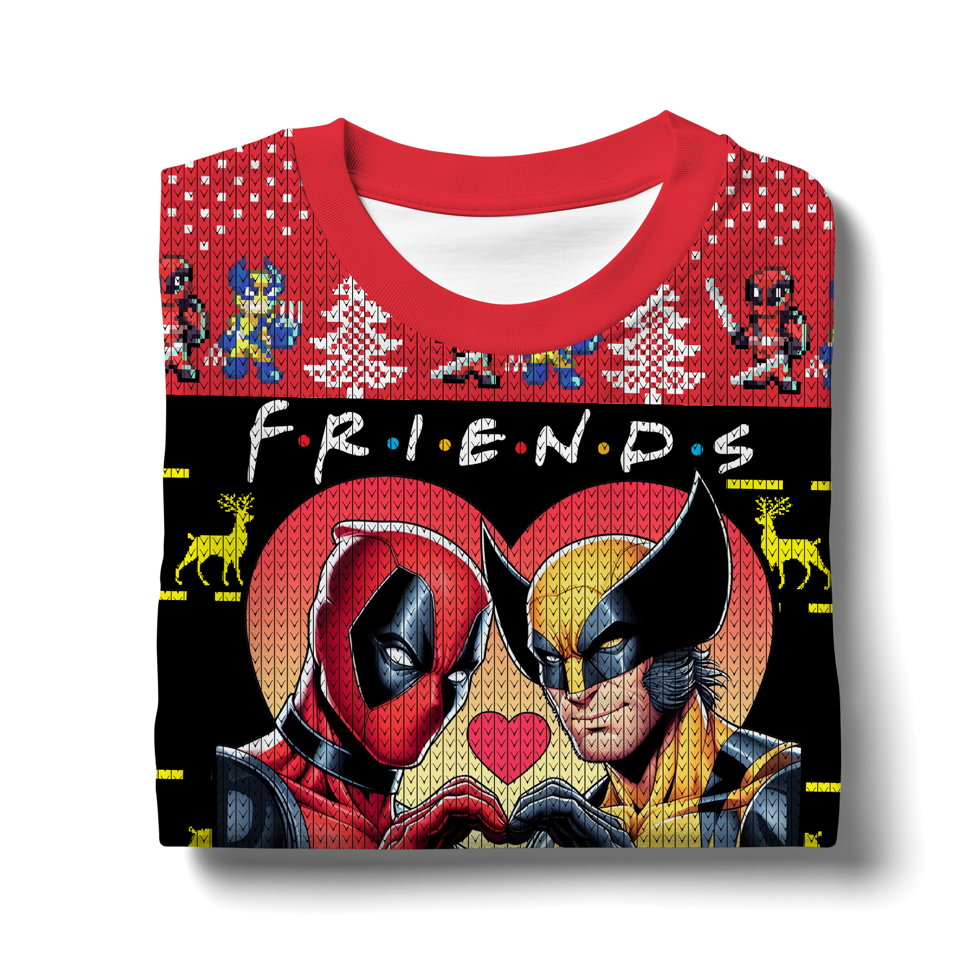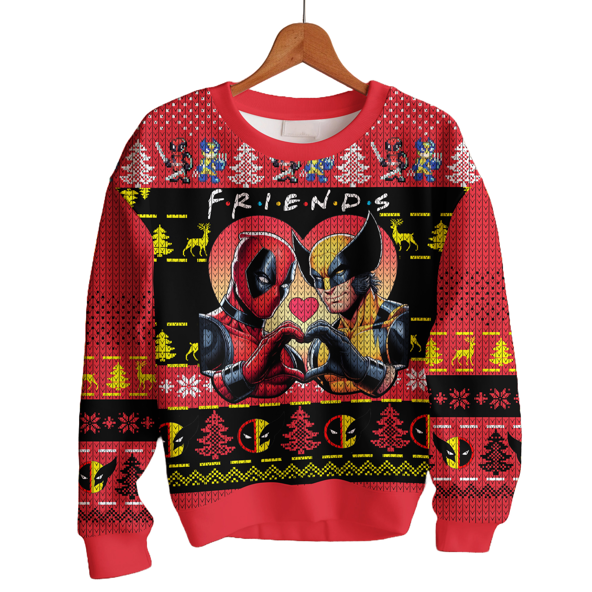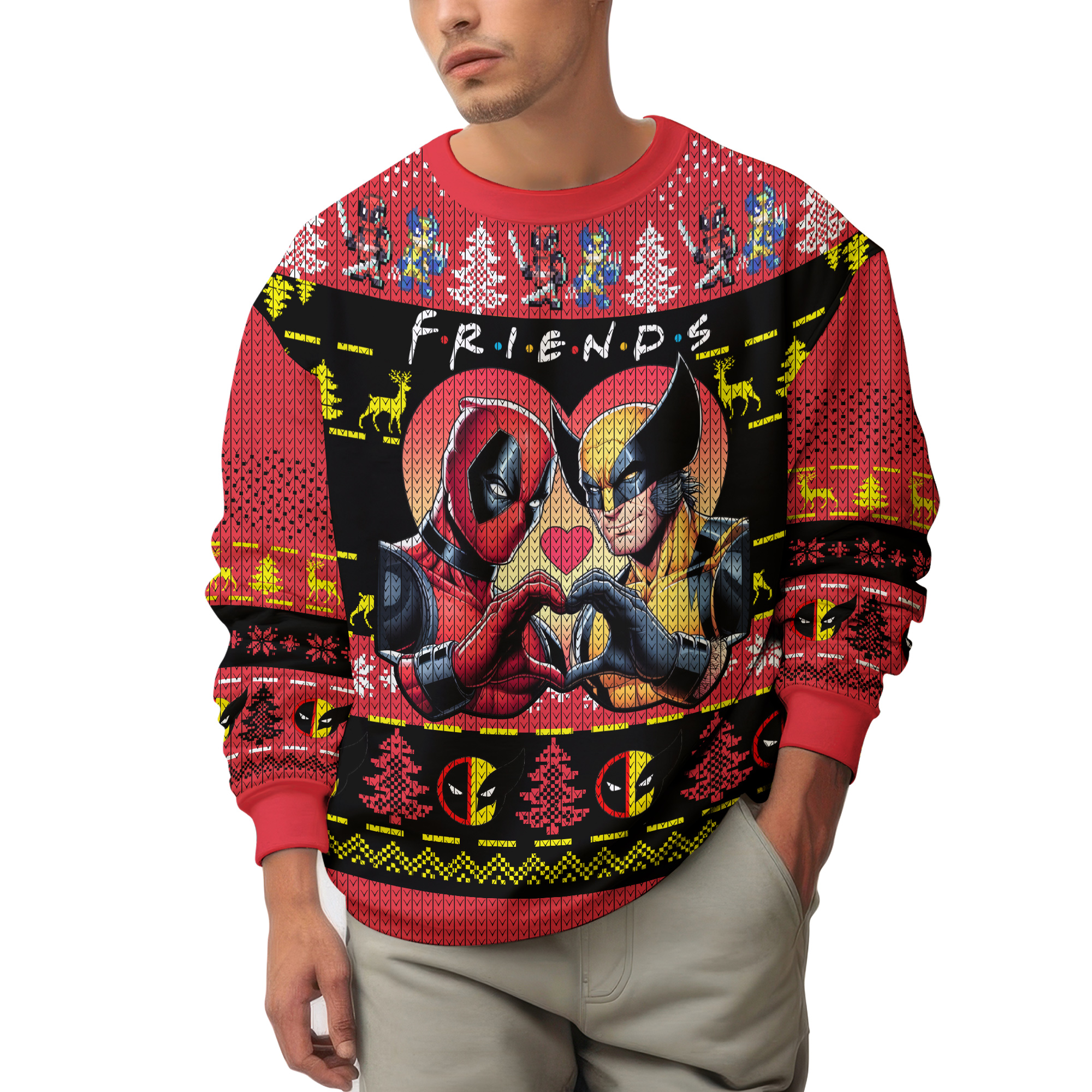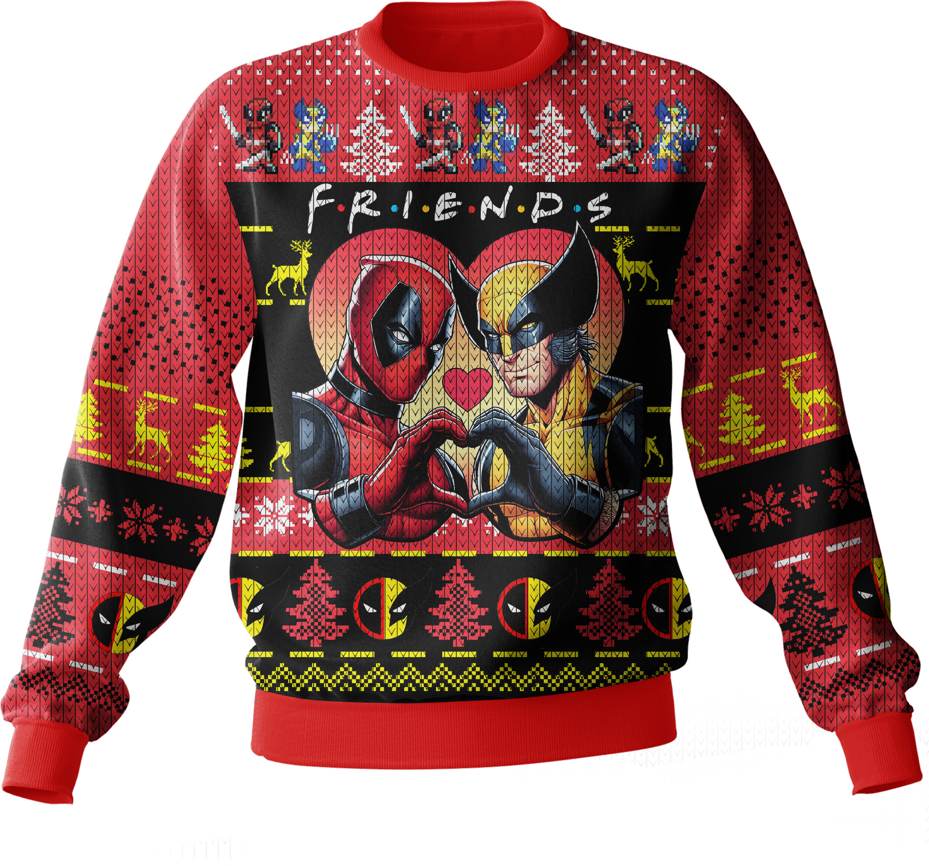 Deadpool Wolverine Ugly Sweater This Curvy Glams exclusive Ugly Christmas Sweater design is guaranteed to get attention and get the party started. It?s sure to be your best holiday purchase yet! Material: Our sweaters are made from high-quality polyester wool blend, which keeps you warm and never crack, peel or flake. Features a specialty high definition heat-dye application that ensures long lasting color vibrancy even after machine washing. All our sweaters are handcrafted, cut and sewn one-by-one for the highest quality standard Sizing: Unisex fit. Click on size chart button above add to cart button for addiditional sizing information Care Instructions: Regular handwash; Machine wash (max 40? or 105F); Do not bleach; Iron on a low heat;Tumble dry.