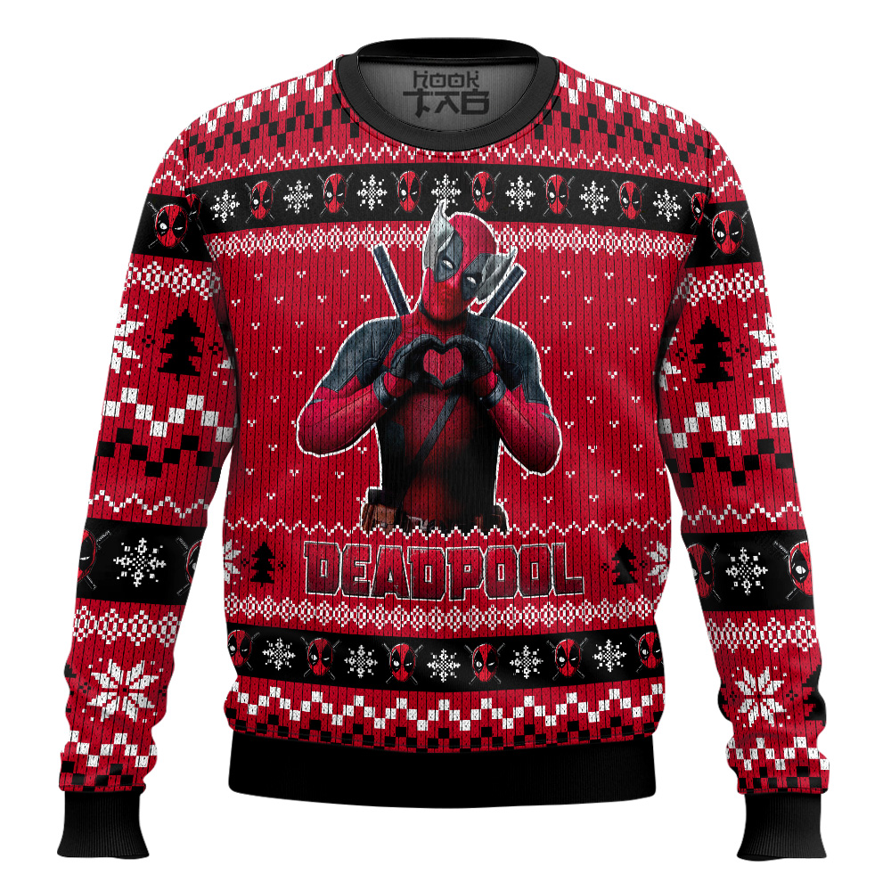 Deadpool X Wolverine Ugly Christmas Sweater This Curvy Glams exclusive Ugly Christmas Sweater design is guaranteed to get attention and get the party started. It?s sure to be your best holiday purchase yet! Material: Our sweaters are made from high-quality polyester wool blend, which keeps you warm and never crack, peel or flake. Features a specialty high definition heat-dye application that ensures long lasting color vibrancy even after machine washing. All our sweaters are handcrafted, cut and sewn one-by-one for the highest quality standard Sizing: Unisex fit. Click on size chart button above add to cart button for addiditional sizing information Care Instructions: Regular handwash; Machine wash (max 40? or 105F); Do not bleach; Iron on a low heat;Tumble dry.