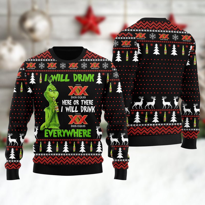 Dos Equis Grinch Will Drink Everywhere Ugly Sweater Dos Equis Grinch Will Drink Everywhere Ugly Sweater