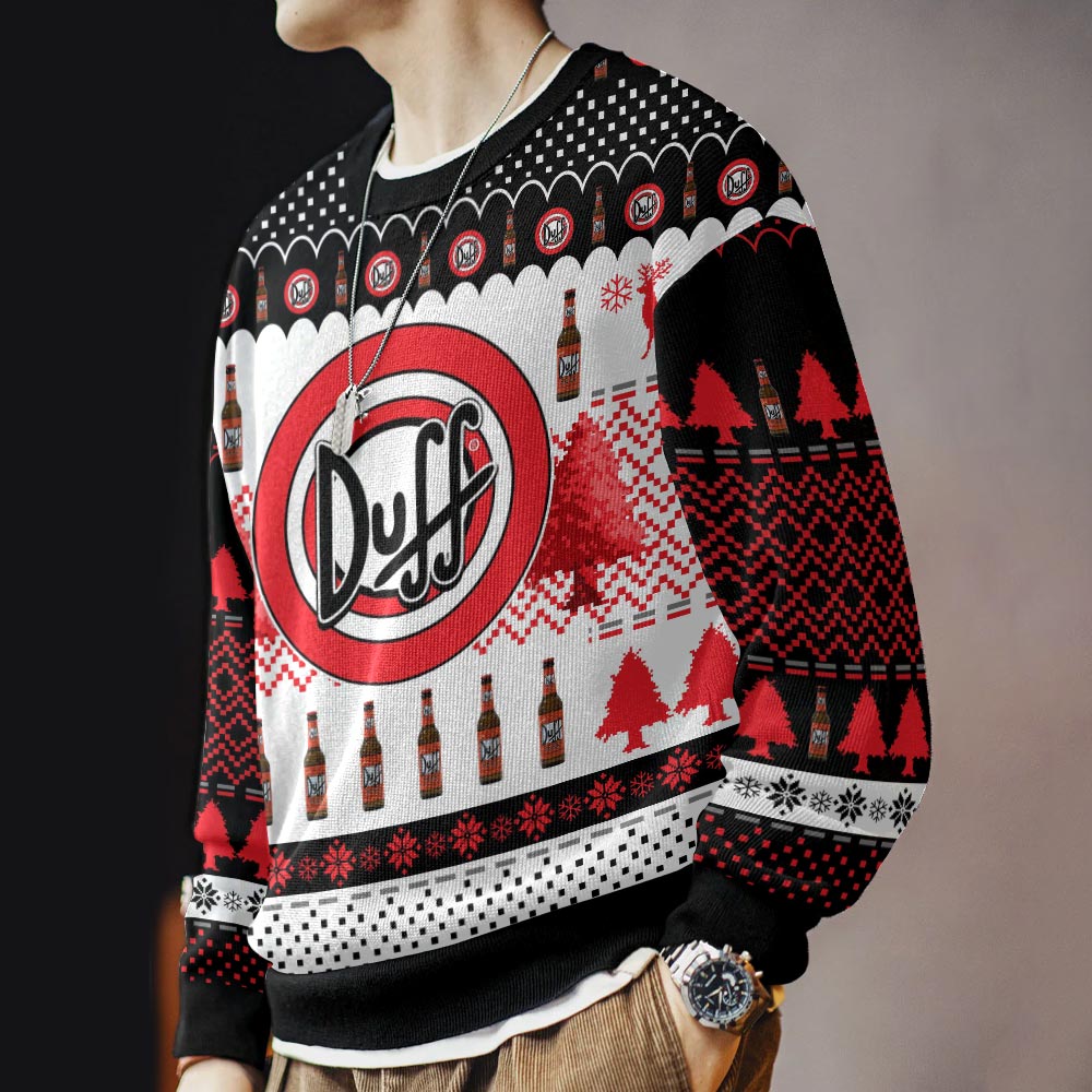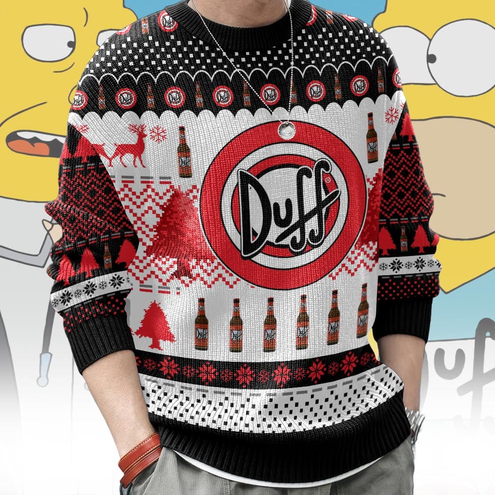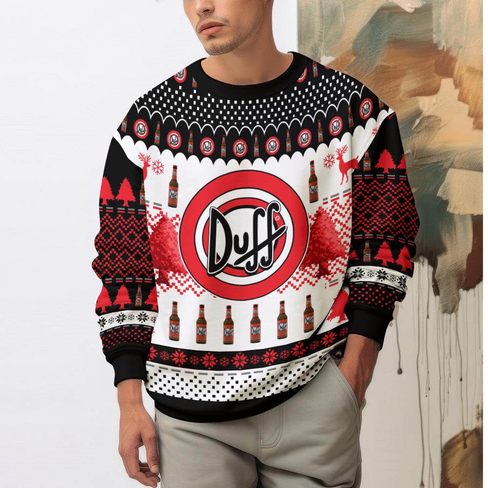 Duff Beer Ugly Sweater This Curvy Glams exclusive Ugly Christmas Sweater design is guaranteed to get attention and get the party started. It?s sure to be your best holiday purchase yet! Material: Our sweaters are made from high-quality polyester wool blend, which keeps you warm and never crack, peel or flake. Features a specialty high definition heat-dye application that ensures long lasting color vibrancy even after machine washing. All our sweaters are handcrafted, cut and sewn one-by-one for the highest quality standard Sizing: Unisex fit. Click on size chart button above add to cart button for addiditional sizing information Care Instructions: Regular handwash; Machine wash (max 40? or 105F); Do not bleach; Iron on a low heat;Tumble dry.