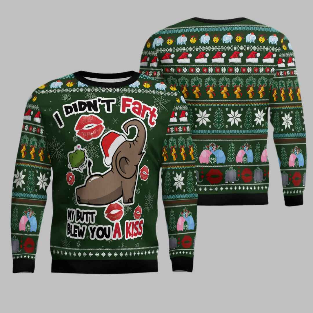 Elephant I Didn?t Fart My Butt Blew You A Kiss Ugly Christmas Sweater