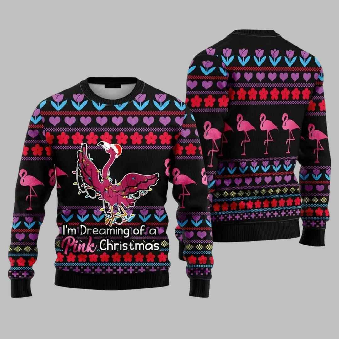 Flamingo Pink I'm Dreaming Of A Pink Christmas Ugly Christmas Sweater