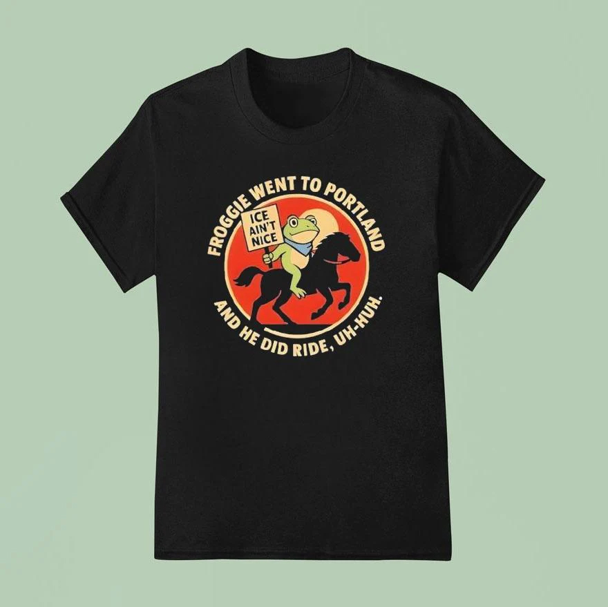 The legend hops on! The Froggie Went To Portland And He Did Ride Uh-huh Ice Ain’t Nice Portland Frog Shirt captures the quirky, viral spirit of Portland’s favorite meme — where local humor, internet culture, and pure fun collide. If you know, you know — this one’s for the true fans of Froggie lore.