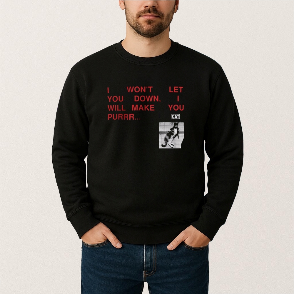 The “Funny I Won’t Let You Down Cat T-Shirt” can be seen as a playful yet thought-provoking piece of apparel that invites multiple interpretations. On the surface, it features a humorous image of a cat, which might simply appeal to cat lovers or those with a quirky sense of humor. However, the phrase “I Won’t Let You Down” can carry deeper connotations, potentially alluding to themes of reliability and trust in a world where these qualities are often questioned. It could be interpreted as a satirical take on political promises, a commentary on social responsibilities, or even a critique of cultural expectations. This layered message encourages wearers and observers alike to engage in discussions about the underlying issues it may reference, making it not just a fashion statement but a conversation starter.