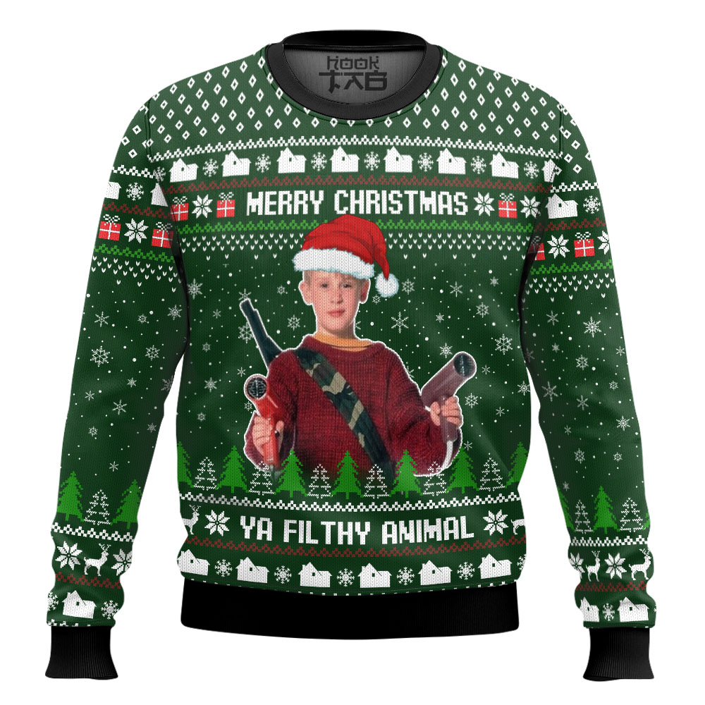Funny Merry Christmas Ya Filthy Animal Home Alone Ugly Christmas Sweater - Ugly Christmas Sweater- Jumper