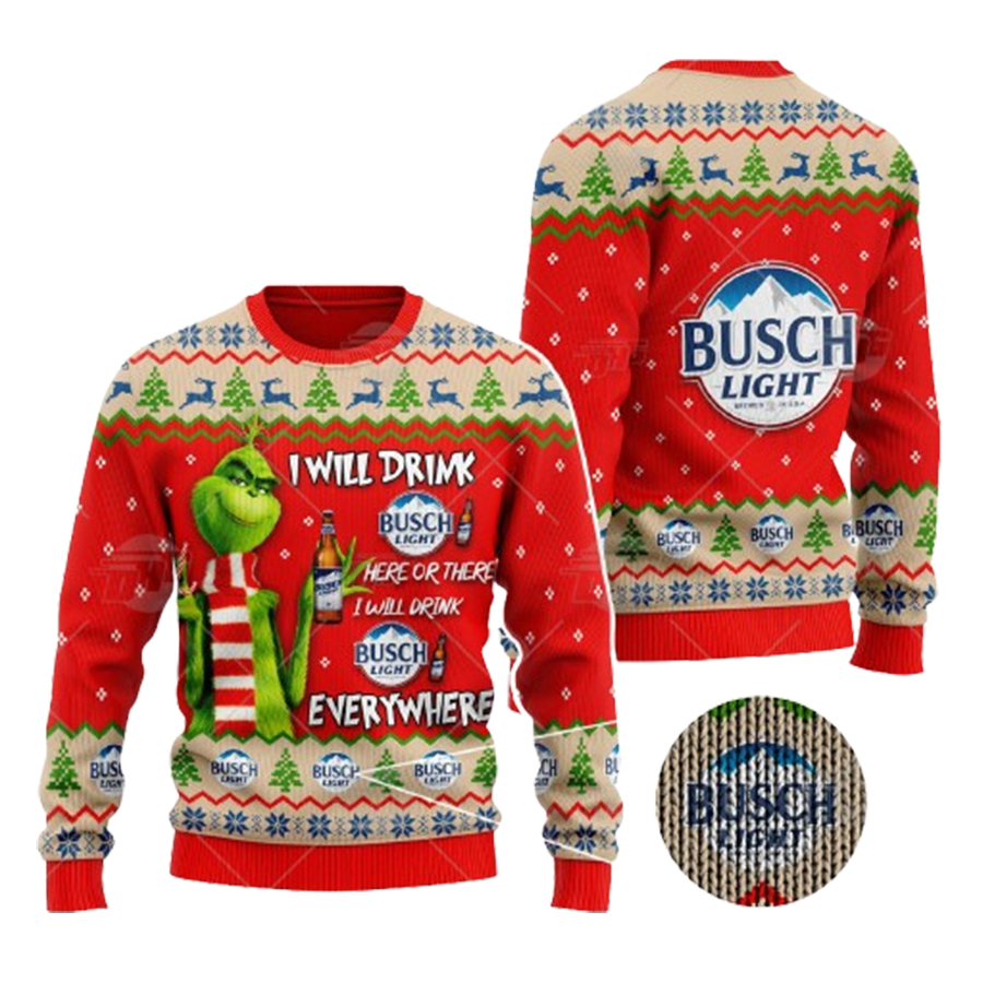 Grinch I Will Drink Here Or There I Will Drink Everywhere Busch Light Beer Ugly Christmas Sweater Grinch I Will Drink Here Or There I Will Drink Everywhere Busch Light Beer Ugly Christmas Sweater