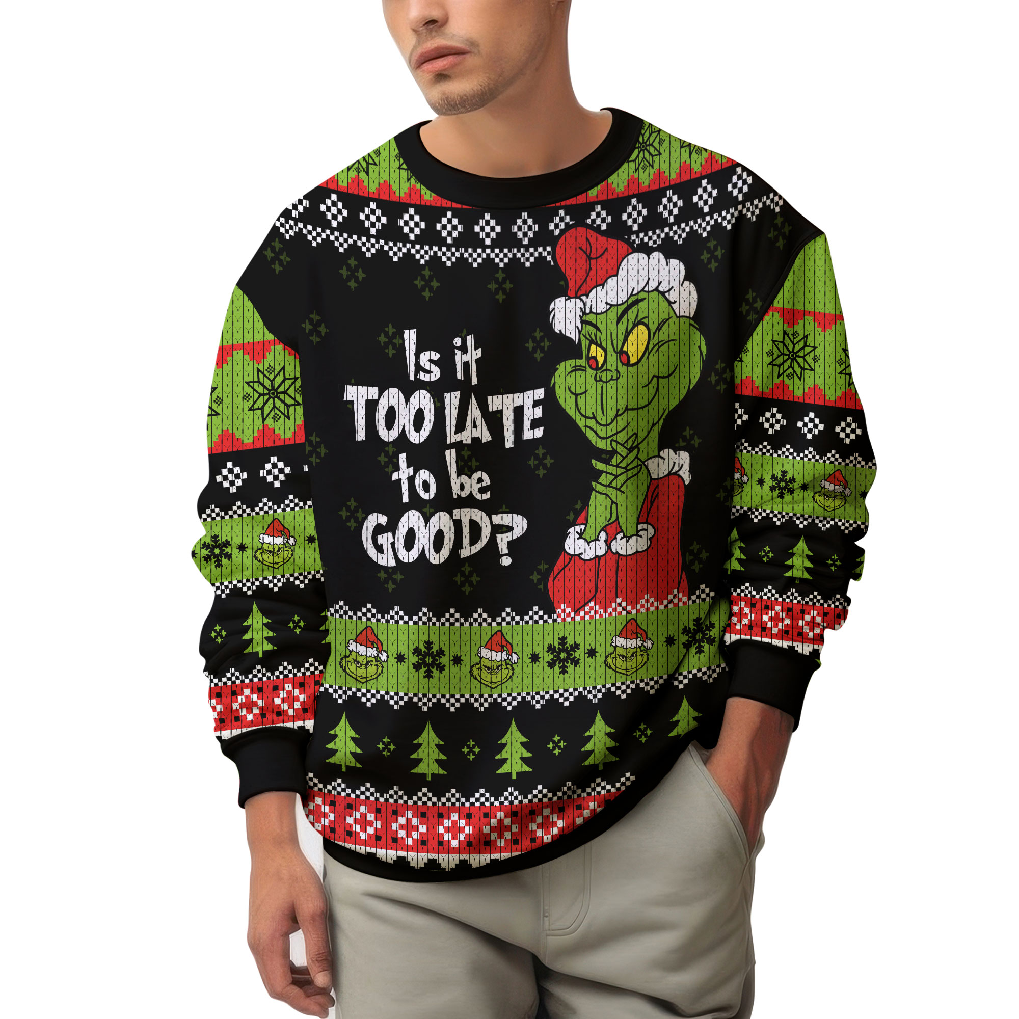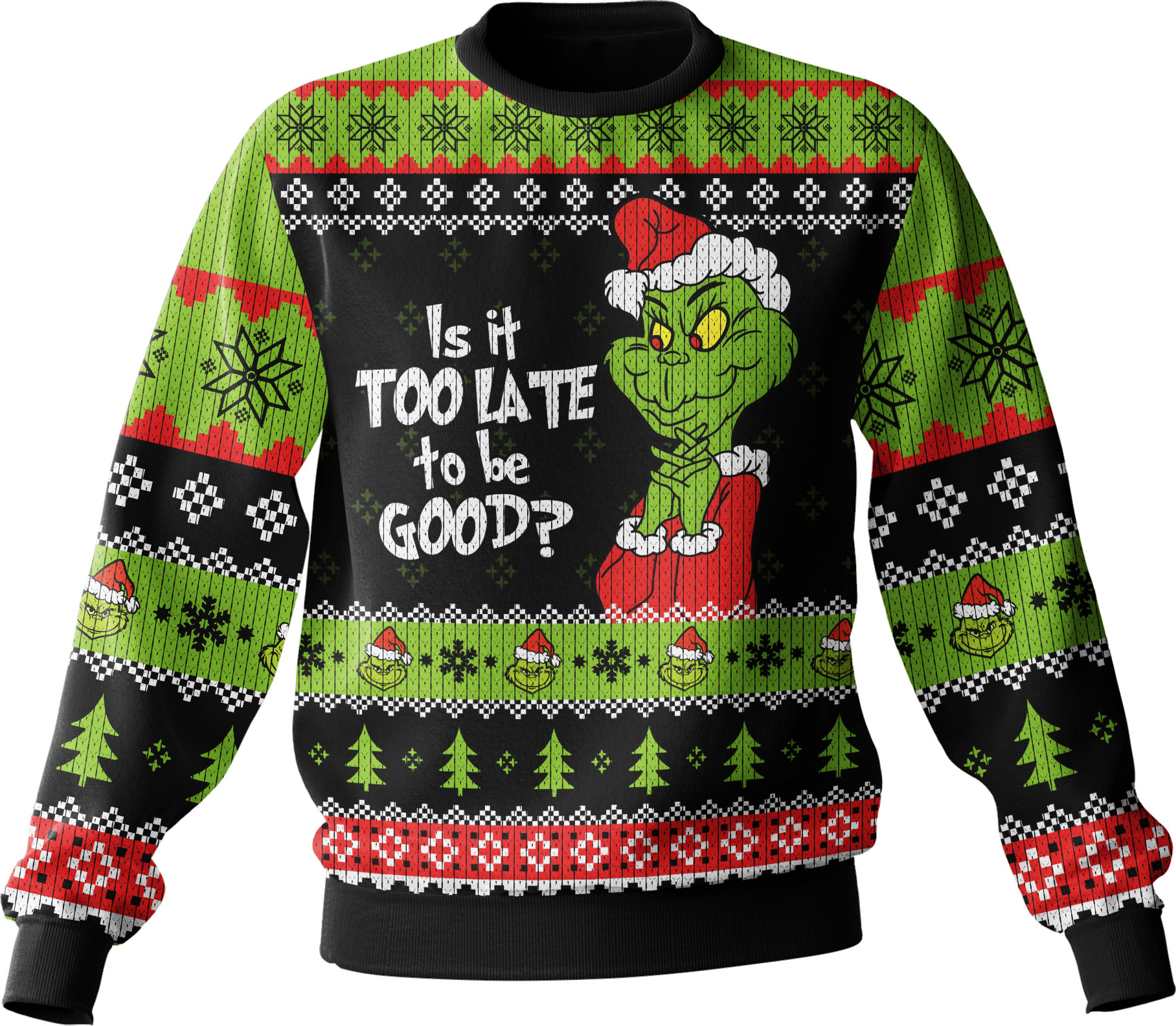 Grinch Ugly Sweater This Curvy Glams exclusive Ugly Christmas Sweater design is guaranteed to get attention and get the party started. It?s sure to be your best holiday purchase yet! Material: Our sweaters are made from high-quality polyester wool blend, which keeps you warm and never crack, peel or flake. Features a specialty high definition heat-dye application that ensures long lasting color vibrancy even after machine washing. All our sweaters are handcrafted, cut and sewn one-by-one for the highest quality standard Sizing: Unisex fit. Click on size chart button above add to cart button for addiditional sizing information Care Instructions: Regular handwash; Machine wash (max 40? or 105F); Do not bleach; Iron on a low heat;Tumble dry.