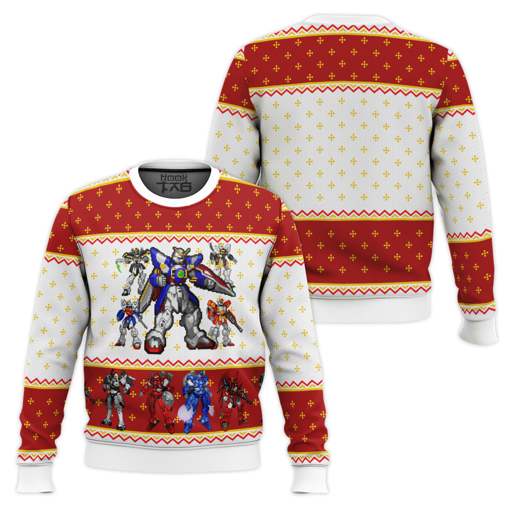 Gundam Wing Sprites Ugly Christmas Sweater This Curvy Glams exclusive Ugly Christmas Sweater design is guaranteed to get attention and get the party started. It?s sure to be your best holiday purchase yet! Material: Our sweaters are made from high-quality polyester wool blend, which keeps you warm and never crack, peel or flake. Features a specialty high definition heat-dye application that ensures long lasting color vibrancy even after machine washing. All our sweaters are handcrafted, cut and sewn one-by-one for the highest quality standard Sizing: Unisex fit. Click on size chart button above add to cart button for addiditional sizing information Care Instructions: Regular handwash; Machine wash (max 40? or 105F); Do not bleach; Iron on a low heat;Tumble dry.