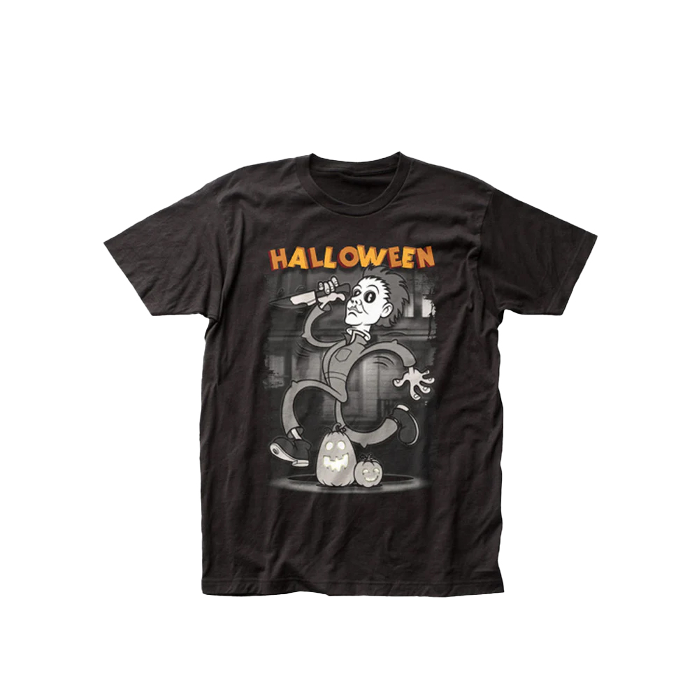 This tee reimagines Michael Myers in a bold, cartoonish rubberhose style, merging the haunting legacy of Halloween with a vintage animation look. It’s for fans who appreciate a little creativity with their horror, giving a fresh spin to one of cinema’s most notorious villains.