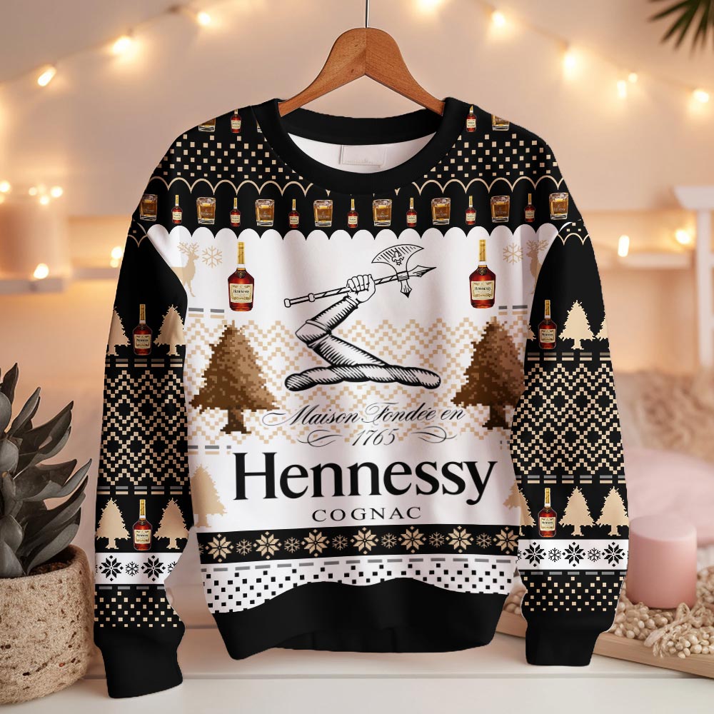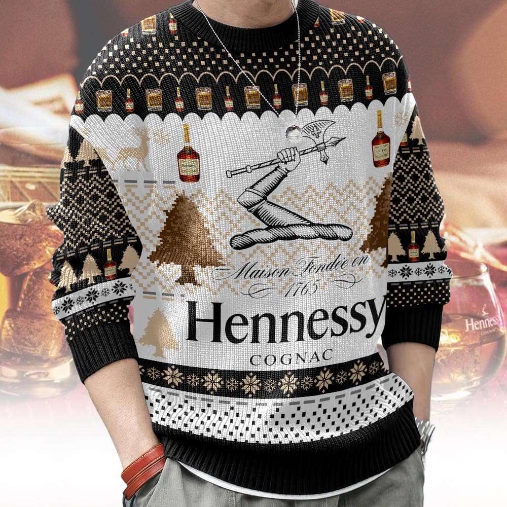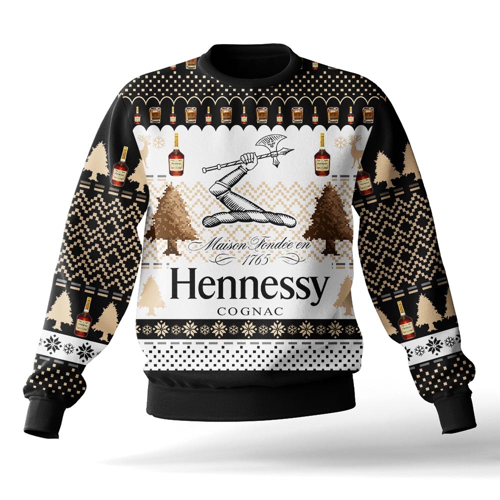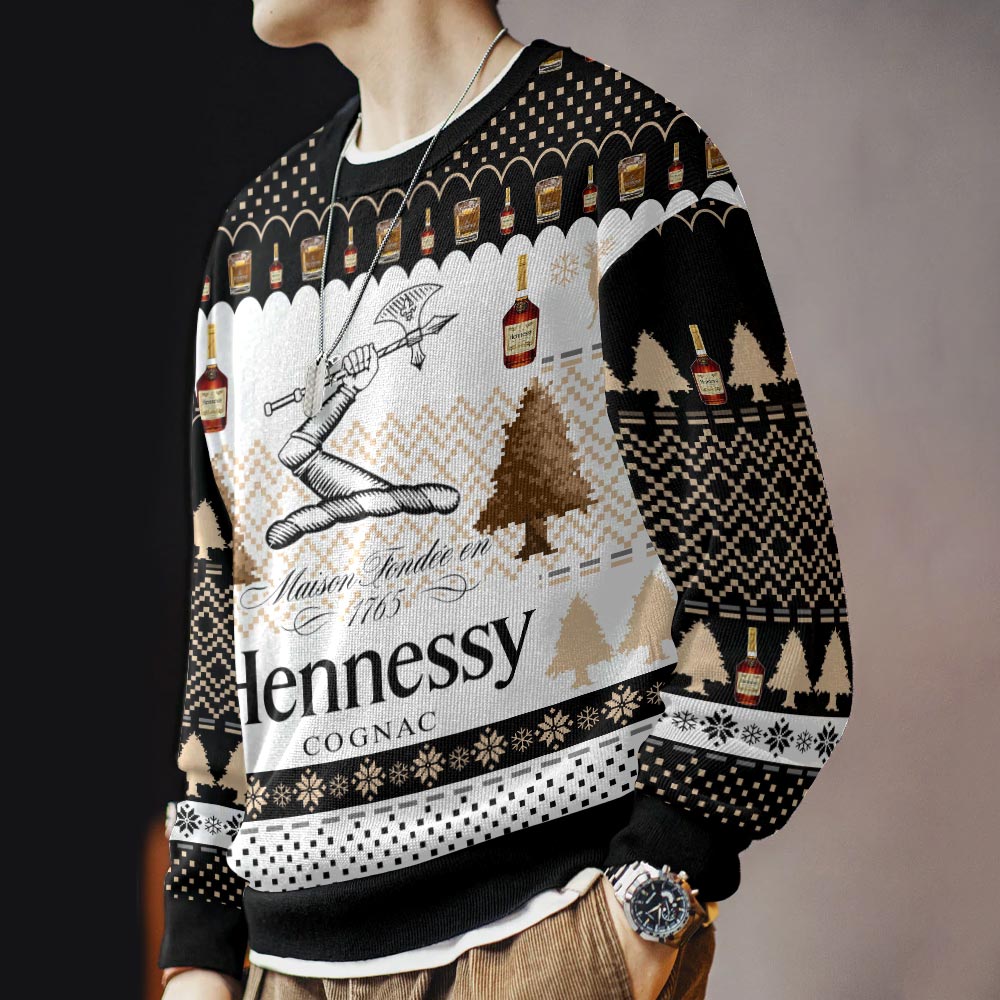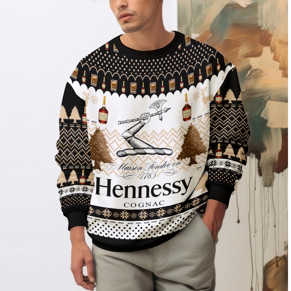 Hennessy Ugly Sweater This Curvy Glams exclusive Ugly Christmas Sweater design is guaranteed to get attention and get the party started. It?s sure to be your best holiday purchase yet! Material: Our sweaters are made from high-quality polyester wool blend, which keeps you warm and never crack, peel or flake. Features a specialty high definition heat-dye application that ensures long lasting color vibrancy even after machine washing. All our sweaters are handcrafted, cut and sewn one-by-one for the highest quality standard Sizing: Unisex fit. Click on size chart button above add to cart button for addiditional sizing information Care Instructions: Regular handwash; Machine wash (max 40? or 105F); Do not bleach; Iron on a low heat;Tumble dry.