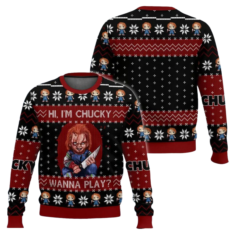 Bring a frightful dose of holiday cheer with the Hi, I’m Chucky Ugly Christmas Sweater — the perfect mix of festive fun and horror nostalgia. Featuring the iconic Good Guy doll introducing himself in classic creepy style, this sweater turns cozy Christmas vibes into killer holiday energy.