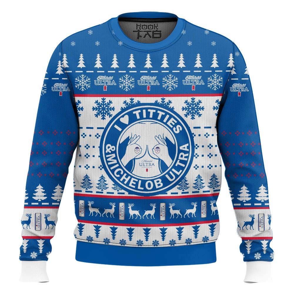I Love Titties And Michelob Ultra Ugly Christmas Sweater