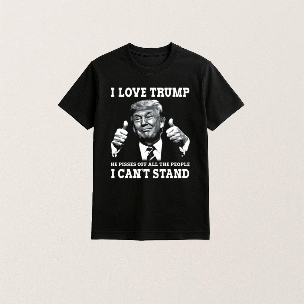 Whether you’re running an online store, designing a team shirt, or looking for a reliable blank to showcase your artwork—this A product with the name “I Love Trump Because He Pisses Off The People T-Shirt” is likely a T-shirt. gives you the quality foundation you need.
