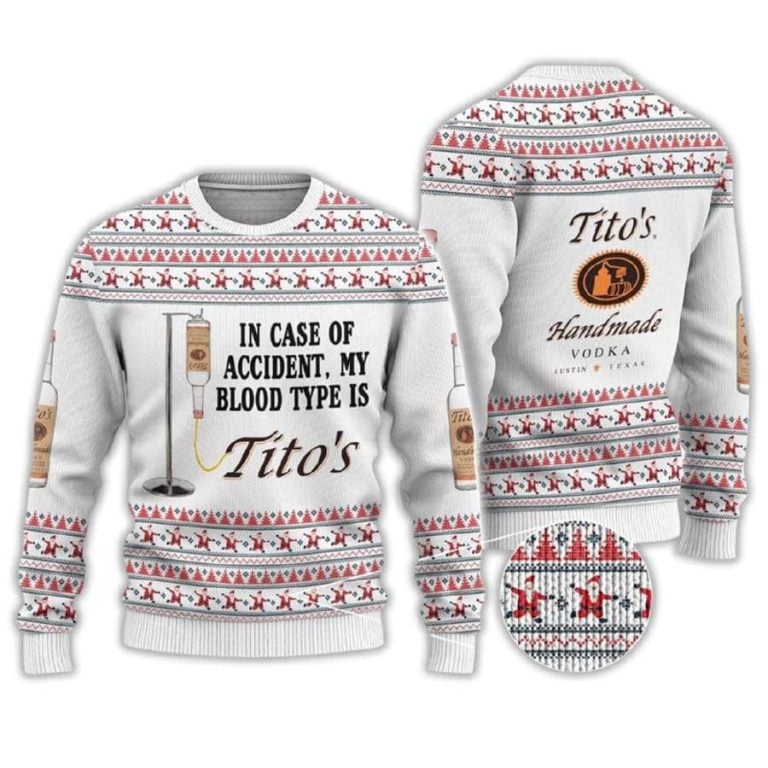 In Case Of Accident My Blood Type Is Tito’s Ugly Christmas Sweater