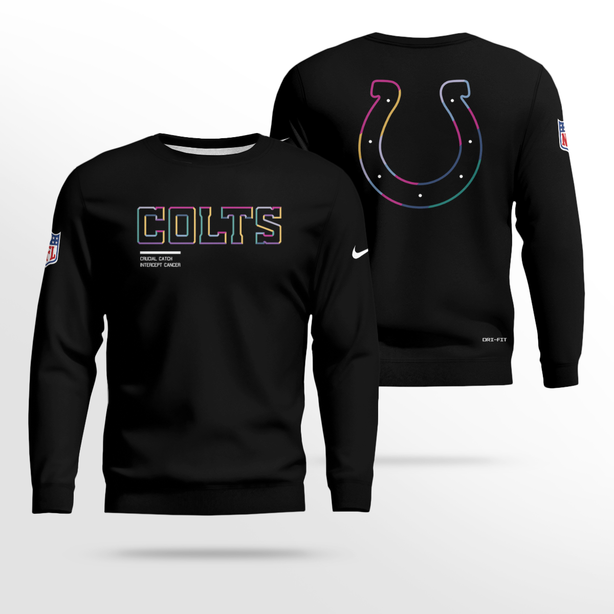 The black design paired with official Colts graphics and Crucial Catch accents delivers a standout style that represents both your team and the mission.