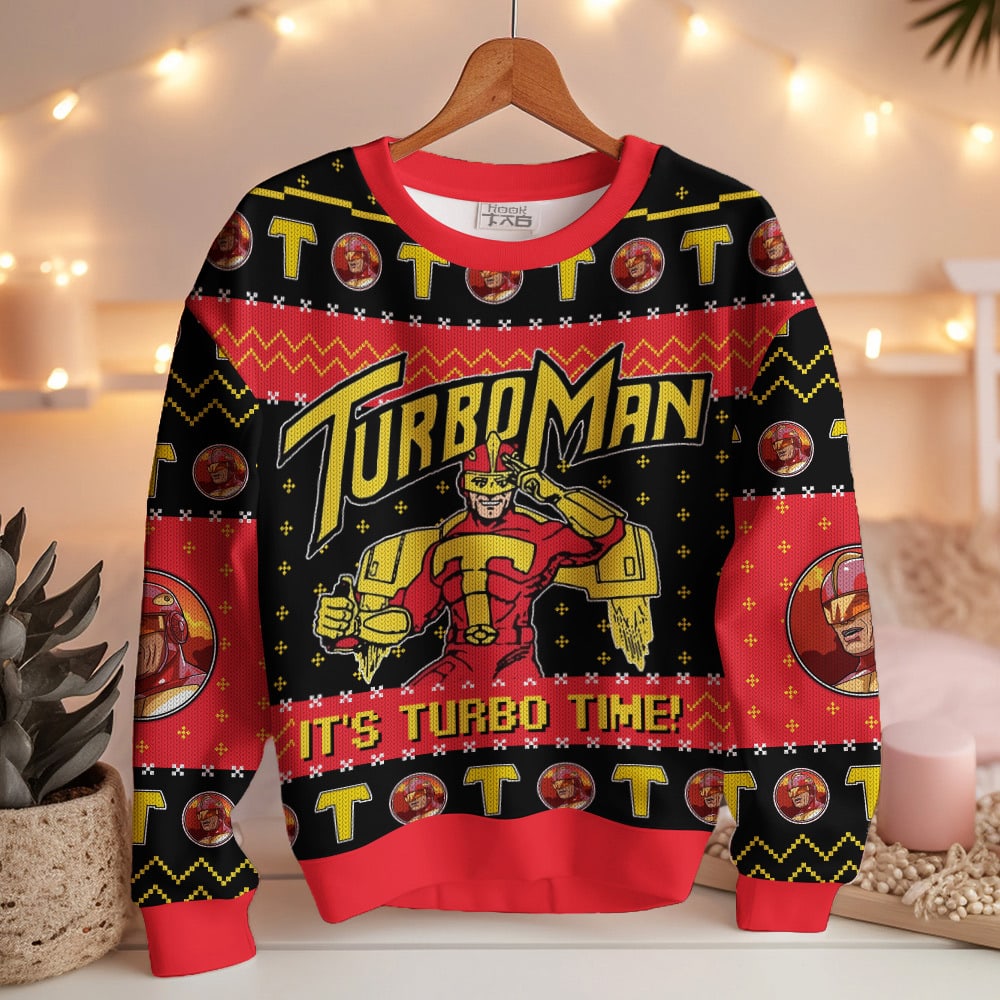 It’s Turbo Time! Turbo Man Jingle All the Way Ugly Sweater