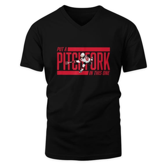 Whether you’re at the Prudential Center, watching the game from home, or just out and about, the Put a Pitchfork in This One T-Shirt is the perfect way to show off your Jack Hughes pride. This shirt is a must-have for New Jersey Devils fans, anyone who loves fast-paced hockey, or anyone who’s seen Hughes put the puck in the back of the net with style.