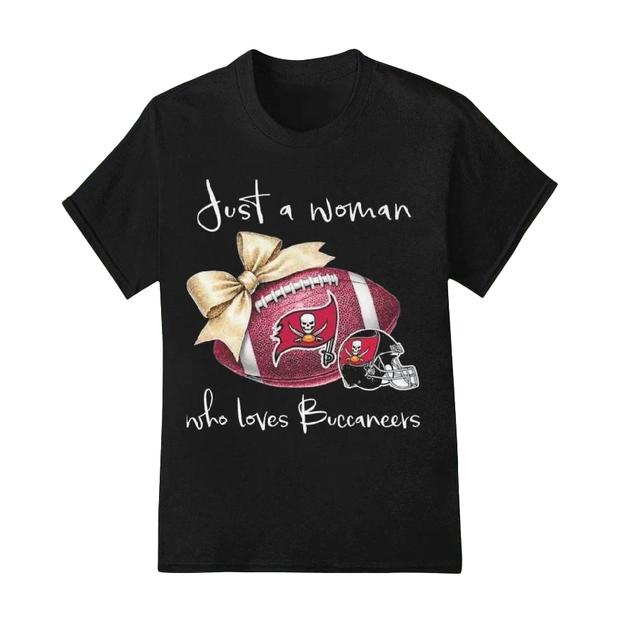 Just A Woman Who Loves Tampa Bay Buccaneers Pink Bow 2025 Shirt Just A Woman Who Loves Tampa Bay Buccaneers Pink Bow 2025 Shirt
